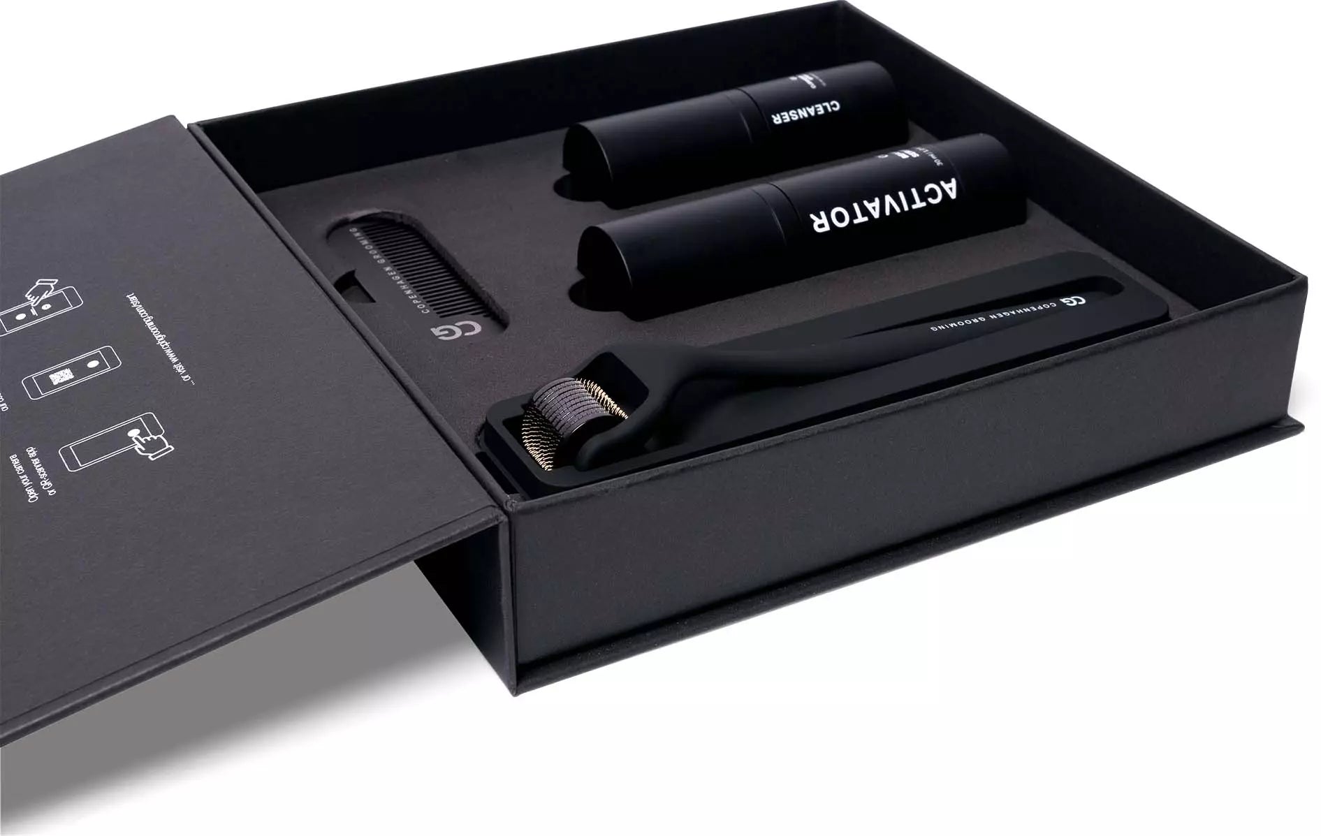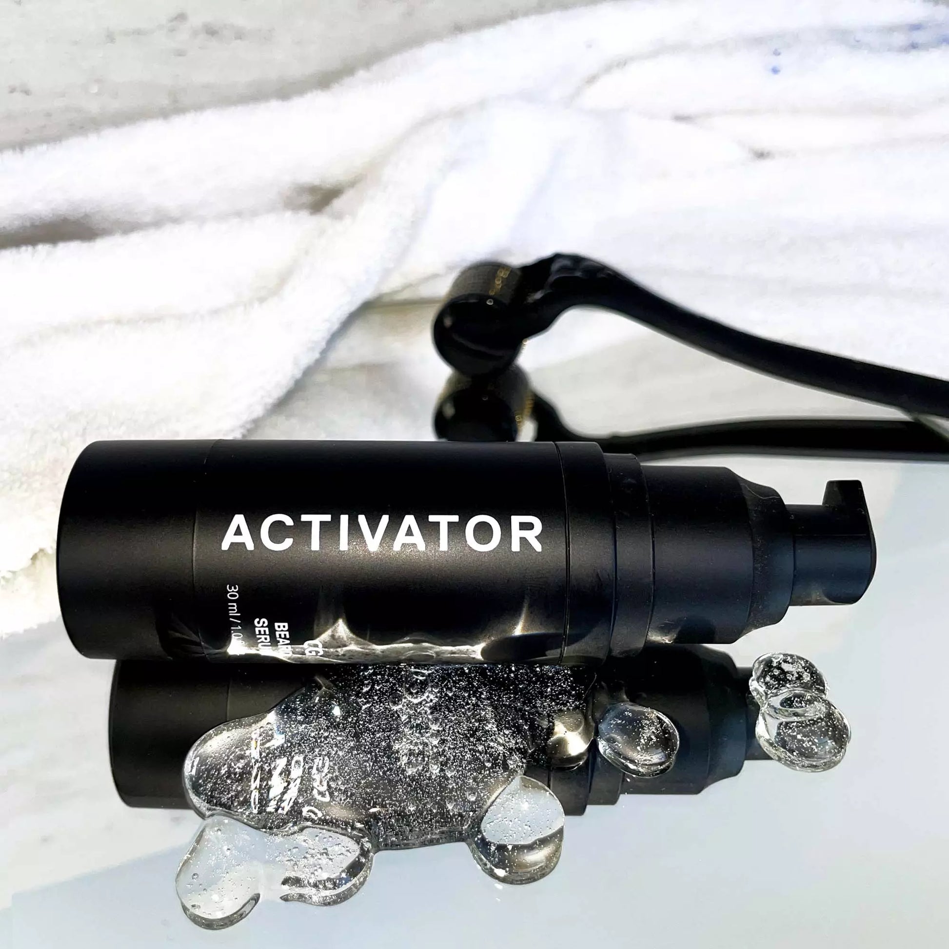 - Komplett kit: Beard Roller, Activator Serum, rengöringsspray & kam