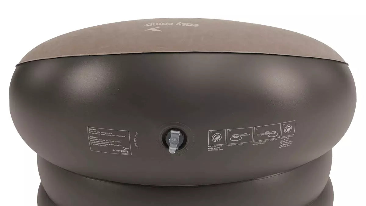 Uppblåsbar campingstol med mjuk velour och bekväm sittställning. Lätt att fylla, tömma och ta med – perfekt för både tältet och uteplatsen.