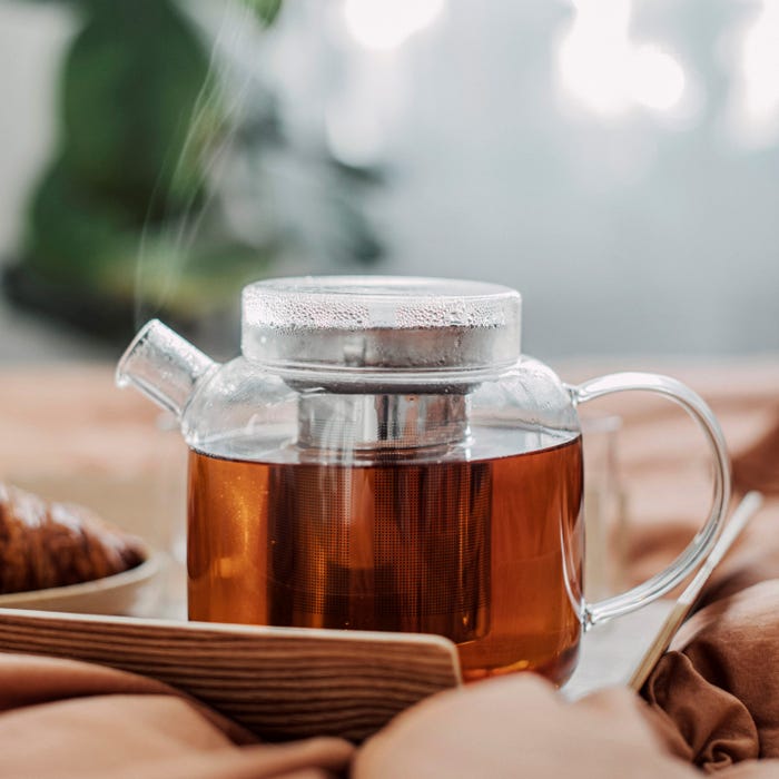 Stilren tekanna i tåligt borosilikatglas som låter dig njuta av färgen på ditt te innan du serverar.